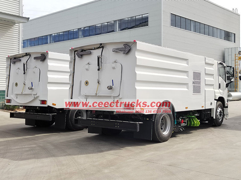 10 CBM လမ်းမကြီးပေါ်ရှိ လှည်းကိုယ်ထည် ကိရိယာအစုံတွင် အမှိုက်ပုံး၊ သန့်ရှင်းရေးယန္တရား၊ ဖုန်စုပ်စနစ်နှင့် ရေဖြန်းစနစ်တို့ ပါဝင်သည်။ ၎င်းတို့၏ ကျိုးကြောင်းဆီလျော်မှု အလုံးစုံဒီဇိုင်းသည် စုပ်ယူခြင်း၊ ဖြန်းခြင်းနှင့် ဖြန်းခြင်းလုပ်ဆောင်ချက်များကို ပေါင်းစပ်ထားသည်။ သုတ်သင်ရှင်းလင်းရေးယန္တရားသည် အမှိုက်များကို စေ့စေ့စပ်စပ် ဖယ်ရှားရန် သေချာစေရန် လမ်းမျက်နှာပြင်နှင့် လိုက်လျောညီထွေ လိုက်လျောညီထွေ လိုက်လျောညီထွေဖြစ်စေသော ခံနိုင်ရည်ရှိသော ပစ္စည်းများနှင့် စွမ်းဆောင်ရည်မြင့် စုတ်တံအပြားကို အသုံးပြုထားသည်။ ဖုန်မှုန့်စုဆောင်းမှုစနစ်သည် ပန်ကာနှင့်ပိုက်များဖြင့်တွဲလျက် ဖုန်မှုန့်များနှင့် အမှုန်အမွှားများကို ထိရောက်စွာဖမ်းယူပေးသည်။ ရေဖြန်းစနစ်သည် ဖုန်မှုန့်များကို လျှော့ချပေးပြီး သန့်ရှင်းသောလေကို ထိန်းသိမ်းပေးသည်။