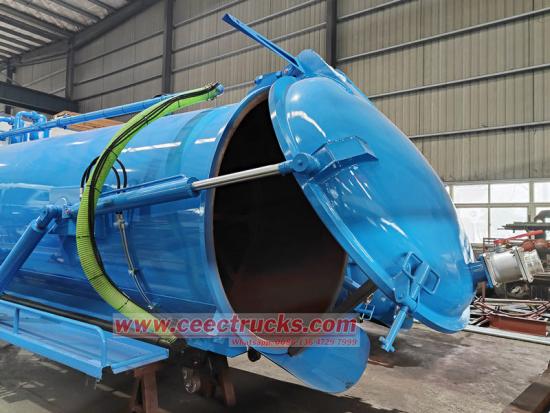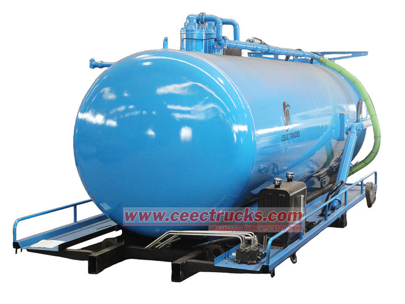 ဖုန်စုပ်ပန့်နှင့် ဆီ-ဓာတ်ငွေ့ခွဲထုတ်ကိရိယာ ပါ၀င်သည့် လေဟာနယ်စနစ်သည် အမှိုက်များကို ထုတ်ယူရန် အနုတ်သဘောဆောင်သော ဖိအားကို အသုံးပြုသည်။ တိုင်ကီတပ်ဆင်ခြင်းအား ခိုင်ခံ့မြင့်မားသော သံမဏိများဖြင့် တည်ဆောက်ထားပြီး ရေဆိုးသိုလှောင်မှုအတွက် စစ်ဆေးရေးပြတင်းပေါက်နှင့် အစာကျွေးသည့်နေရာပါရှိပါသည်။ suction and discharge pipes နှင့် control valve အပါအဝင် piping system သည် media transfer အတွက် တာဝန်ရှိသည်။ ဟိ ထရပ်ကားတွင် တပ်ဆင်ထားသော လေဟာနယ်တင်သင်္ဘော ယူနစ် ဟိုက်ဒရောလစ်စနစ်သည် တိုင်ကီကို မြှောက်ကာ နောက်ဖုံးကိုဖွင့်ကာ ရေဆိုးများ စွန့်ထုတ်ခြင်းကို လွယ်ကူစေသည်။ လည်ပတ်မှုပလပ်ဖောင်းတွင် အချိန်နှင့်တပြေးညီ စောင့်ကြည့်မှုအတွက် ထိန်းချုပ်ခလုတ်များနှင့် ဖိအားတိုင်းကိရိယာများ တပ်ဆင်ထားသည်။