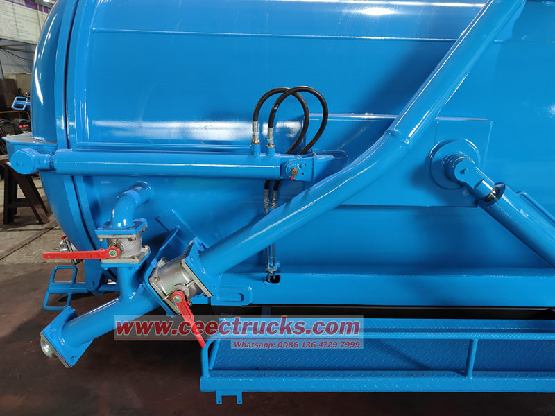 ♦ တိုင်ကီပြည့်သောအခါ၊ အော်ပရေတာသည် valve ကို positive pressure သို့ပြောင်းပြီး အမှိုက်များကို ဖိအားအောက်တွင် စွန့်ထုတ်နိုင်စေပါသည်။ ဟိုက်ဒရောလစ်ဓာတ်လှေကားစနစ်ပါရှိသည့် တိုင်ကီသည် ဆွဲငင်အားကို ဖယ်ရှားရန်အတွက် စောင်းနိုင်သည်။