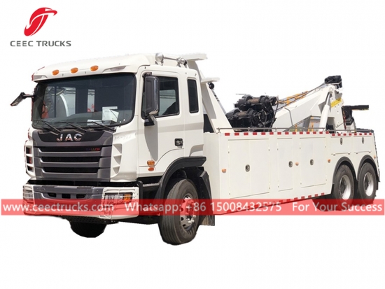 အကောင်းဆုံး JAC 16tons road wrecker ထရပ်ကား တင်ပို့သည့် Sierra Leone၊ JAC classical 6x4 LHD ကိုယ်ထည်၊ Manual 9-shift ဂီယာအုံ၊ YUCHAI 336HP ဒီဇယ်အင်ဂျင်၊ ဟိုက်ဒရောလစ်ဆလင်ဒါဖြင့် အရှိန်မြှင့်ခြင်း၊ ပန်းချီနှင့် လိုဂိုများ လိုအပ်ချက်အပေါ် မူတည်ပါသည်။