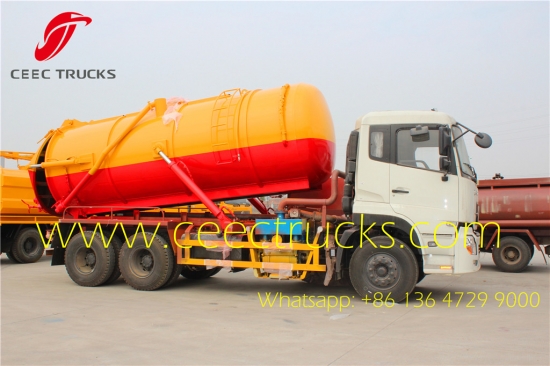Dongfeng 6*4 LHD ကိုယ်ထည်၊ 240HP စူပါစွမ်းအားကြီးအင်ဂျင်၊ 8-shift manual ဂီယာဘောက်စ်၊ 5mm အထူရှိသော ကာဗွန်သံမဏိပစ္စည်းများကို အသုံးပြုထားသည့် အရောင်းရဆုံးမော်ဒယ် 18m³ cesspit emptier၊ လိုအပ်သလို ပန်းချီနှင့် လိုဂိုများ