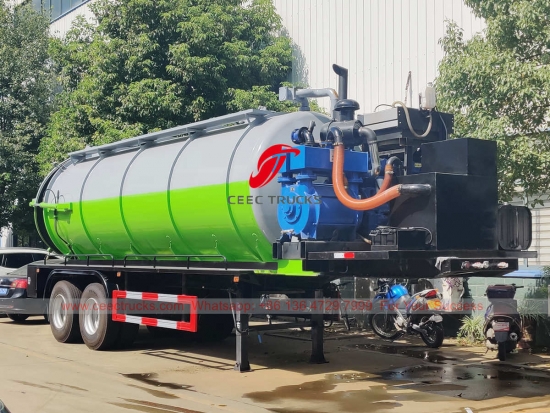 Vacuum Sewer Semi-trailer (ကိုလည်းခေါ်တယ်။မိလ္လာရေနံတင်ယာဉ်နောက်တွဲ၊ ဖုန်စုပ်တိုင်ကီနောက်တွဲ၊ မိလ္လာကန်တစ်ပိုင်းတွဲ၊ မိလ္လာကန်တစ်ပိုင်းတွဲ၊ နောက်တွဲယာဉ်တပ်ဆင်ထားသော လေဟာနယ်စနစ်၊ တရုတ်ဖုန်စုပ်ကန်ထရပ်ကားထုတ်လုပ်သူ)သည်ညစ်ညမ်းသောရေ၊ အမှိုက်၊ မိလ္လာကန်၊ ရေနံစိမ်း၊ ကျောက်တုံးများ၊ အုတ်ခဲစသည့် အစိုင်အခဲ ပစ္စည်းများ စုဆောင်း သယ်ယူ စွန့်ပစ်ရန် အသုံးပြုသည်။ မြောင်း၊ တွင်း၊ ရေကန်၊ လျှိုစသည်တို့ကို သန့်ရှင်းရေးအတွက် သင့်လျော်သည်။ ၎င်းကို ပတ်ဝန်းကျင်နှင့် သန့်ရှင်းရေးနယ်ပယ်တွင် တွင်ကျယ်စွာ အသုံးပြုသည်။