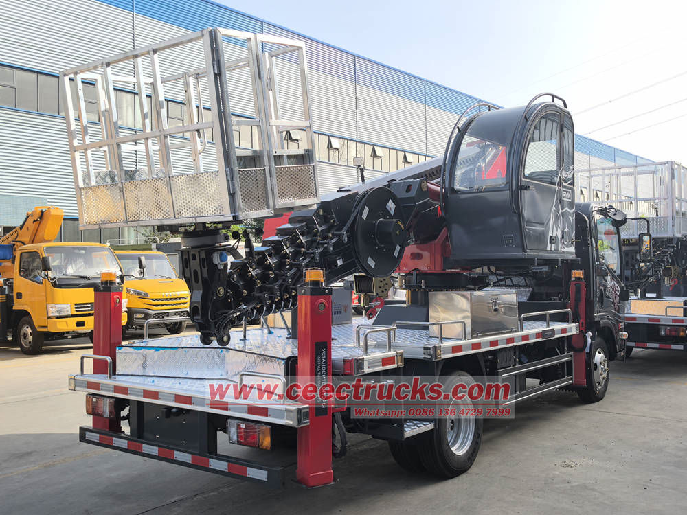 Isuzu KV100 ဝေဟင်လုပ်ငန်းသုံး ပလပ်ဖောင်းထရပ်ကားသည် ကြီးမားသော တိုးချဲ့ထောင့်နှင့် လိုက်လျောညီထွေရှိသော လည်ပတ်မှုနှင့်အတူ ကဏ္ဍပေါင်းစုံ တယ်လီစကုပ်လက်တံဒီဇိုင်းကို ခံယူထားပြီး သာမန်စက်ပစ္စည်းများအတွက် အလွယ်တကူရောက်ရှိရန်ခက်ခဲသော အမြင့်များကို အလွယ်တကူရောက်ရှိနိုင်သည်။ ပလပ်ဖောင်းပေါ်ရှိ လည်ပတ်မှုစနစ်သည် ရိုးရှင်းပြီး ရှင်းရှင်းလင်းလင်းရှိပြီး လျှပ်စစ်လည်ပတ်မှု၊ မြေပြင်အဝေးထိန်းခလုတ်၊ တောင်းအတွင်း ထိန်းချုပ်ကိရိယာနှင့် အရေးပေါ်လည်ပတ်လီဗာကဲ့သို့သော လည်ပတ်မှုမုဒ်များစွာဖြင့် တပ်ဆင်ထားသောကြောင့် အော်ပရေတာများ၏ ဘေးကင်းမှုနှင့် ထိရောက်မှုတို့ကို အာမခံပါသည်။
