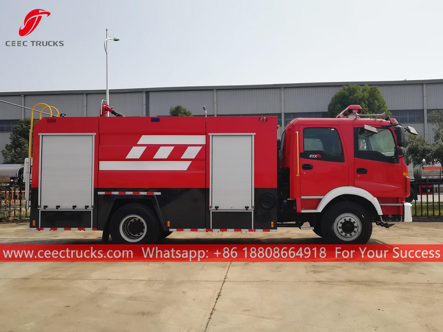 FOTON 5CBM ရေတင်သင်္ဘော မီးသတ်ကား၊ FOTON Left Hand Drive မော်ဒယ် 4x2 ကိုယ်ထည်၊ 7-shift manual ဂီယာအုံ၊ CUMMINS 210HP ဒီဇယ်အင်ဂျင်၊ ရေတင်သင်္ဘော ပမာဏ 5000Liters၊ လိုအပ်ချက်ပေါ်မူတည်၍ ပန်းချီနှင့် လိုဂိုများကို အသုံးပြုပါ။