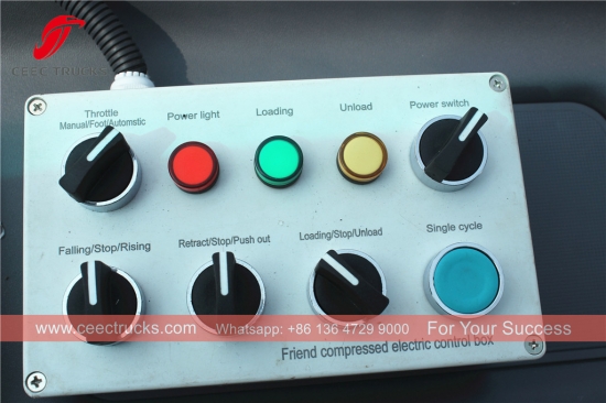 ** Back alarm နှင့် Camera တပ်ဆင်နိုင်ပါသည်။ ** အီတလီနိုင်ငံမှ multi-valve ကိုရွေးချယ်နိုင်ပါသည်။ ** 240L (single bin သို့မဟုတ် double bin) သို့မဟုတ် standard 660 L, 1100 L bins with bin lifter ကို ရွေးချယ်နိုင်ပါသည်။ |