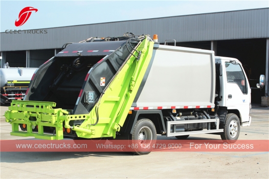 အကောင်းဆုံးစျေးနှုန်းဖြင့်ရောင်းမည့် Dubai 5cbm အမှိုက်ညှပ်ထရပ်ကား၊ ISUZU 4x2 ကိုယ်ထည်၊ 120HP ဒီဇယ်အင်ဂျင်၊ MSB 5-shift manual gearbox၊ Germany Siemens PLC control box၊ နောက်ဘက်စောင်းနေသောစက်သည် 240L၊ 360L၊ 660L နှင့် 1100L တို့ကို တင်ဆောင်နိုင်သည်။ နိုင်ငံတကာတွင် ပန်းချီကားများ လိုအပ်သည်