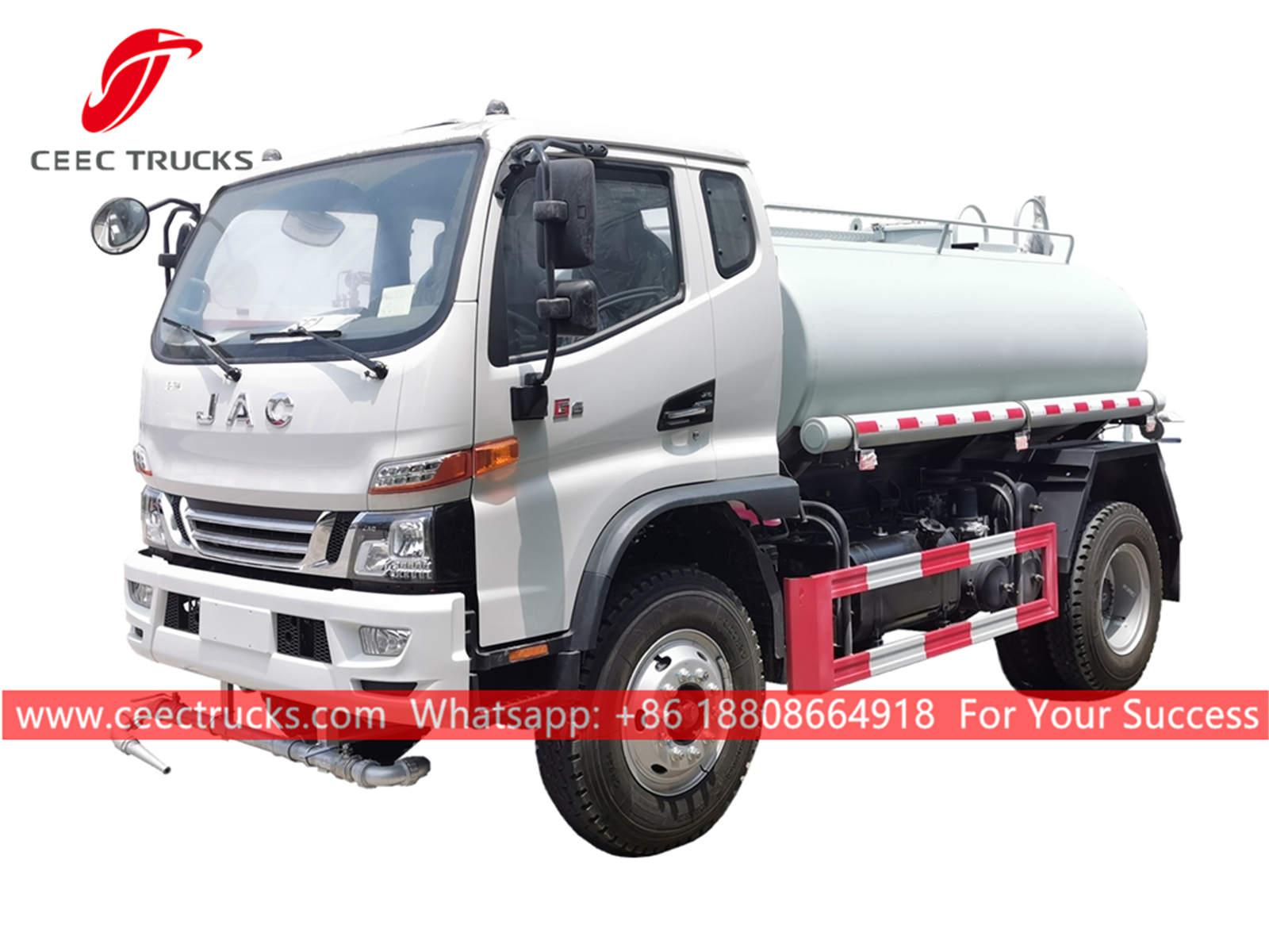မြန်မာ5,000L water bowser ထရပ်ကား၊ JAC 4x2 ဘယ်ဘက်လက်မောင်းကိုယ်ထည်၊ 5-shift manual ဂီယာအုံ၊ YUNNEI 116HP ဒီဇယ်အင်ဂျင်၊ နာမည်ကြီး အမှတ်တံဆိပ် ရေစုပ်စက်၊ ရှေ့၊ အလယ်နှင့် အနောက် မှုတ် Nozzle ပါသော စိတ်ကြိုက်ရွေးချယ်နိုင်သည်။ ပန်းချီနှင့် လိုဂိုအားလုံးသည် လိုအပ်ချက်အပေါ် မူတည်ပါသည်။