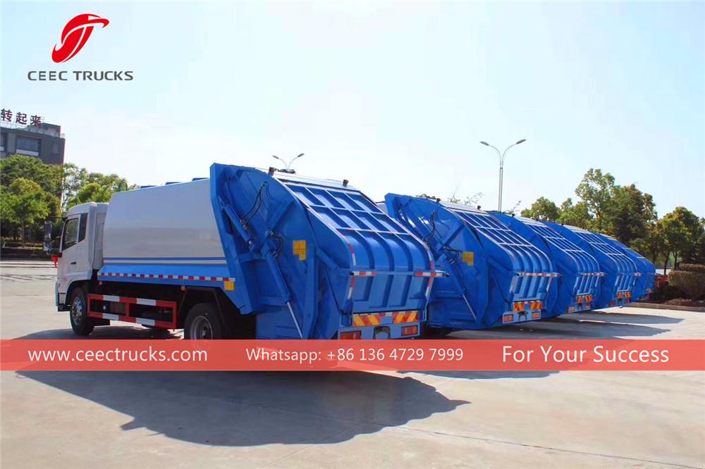 Dongfeng အမှိုက်ကြိတ်စက်ထရပ်ကားများသည် ကျွန်ုပ်တို့စက်ရုံရှေ့တွင်ရှိသည်။