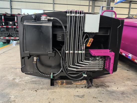 2. compactor ကိုယ်ထည်အတွင်း ဖိသိပ်ထားသော အမှိုက်များကို စွန့်ပစ်ရန်အတွက် အဆင်သင့်ဖြစ်သောအခါ၊ Rear Hopper ကိုဖွင့်ပြီး၊ Push Plate အား အမှိုက်စွန့်ပစ်ရန်အတွက် နောက်ပြန်ရွှေ့ပါ။