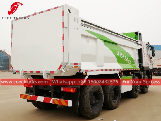 60Tons dump tipper ထရပ်ကား၊ IVECO 8x4 LHD ကိုယ်ထည်၊ FAST 12-shift manual ဂီယာအုံ၊ နာမည်ကြီး တရုတ်အမှတ်တံဆိပ် SFH 390HP ဒီဇယ်အင်ဂျင်၊ စွမ်းအားမြင့် သံမဏိ tipper ကိုယ်ထည်၊ HYVA သို့မဟုတ် ပြည်တွင်း ဟိုက်ဒရောလစ် lifter တို့ကို ရွေးချယ်နိုင်သည်။ ပန်းချီနှင့် လိုဂိုအားလုံးသည် လိုအပ်ချက်အပေါ် မူတည်ပါသည်။