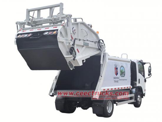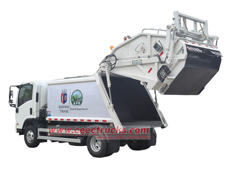Isuzu NPR rear loader သည် စွမ်းဆောင်ရည်မြင့်မားပြီး ဘက်စုံသုံး သန့်ရှင်းရေးယာဉ်ဖြစ်ပြီး မြို့ပြပြည်တွင်းအမှိုက်များ စုဆောင်းခြင်း၊ ဖိသိပ်ခြင်းနှင့် သယ်ယူပို့ဆောင်ခြင်းအတွက် အဓိကအားဖြင့် အသုံးပြုပါသည်။ Isuzu 4KH1CN6LB 120hp အင်ဂျင်ပါရှိသော 3360mm wheelbase ၊ Euro 6 ဒီဇယ် 2.999L ထုတ်လွှတ်မှု၊ Isuzu-6070SBear with 3360mm wheelbase စုစုပေါင်း 7 pcs၊ A/C၊USB၊ လမ်းညွှန်အကူအညီ၊ ထိုင်ခုံ ၃ လုံးပါရှိသည်။ အပေါ်ပိုင်းကိုယ်ထည်သည် 10cbm အမှိုက်ပုံးဖြစ်ပြီး နောက်ဘက်တွင် ပုံးလှန်ယန္တရားဖြစ်ပြီး ထရပ်ကားတင်ခြင်းနှင့် ဖယ်ရှားခြင်းလုပ်ဆောင်ရန် နည်းလမ်း 3 ခုရှိသည်။