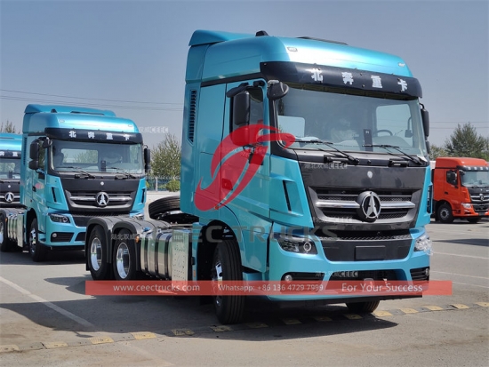 Beiben 6x4 V3 ထွန်စက်ထရပ်ကား၊ LHD သို့မဟုတ် RHD၊ WEICHAI 560HP ဒီဇယ်အင်ဂျင်၊ FAST 9-shift manual ဂီယာအုံ၊ အမြင့်ဆုံး ဆွဲငင်အလေးချိန်သည် တန်ချိန် 40 အထိ ရှိနိုင်သည်၊ ပန်းချီနှင့် လိုဂိုများသည် လိုအပ်ချက်အပေါ် မူတည်ပါသည်။