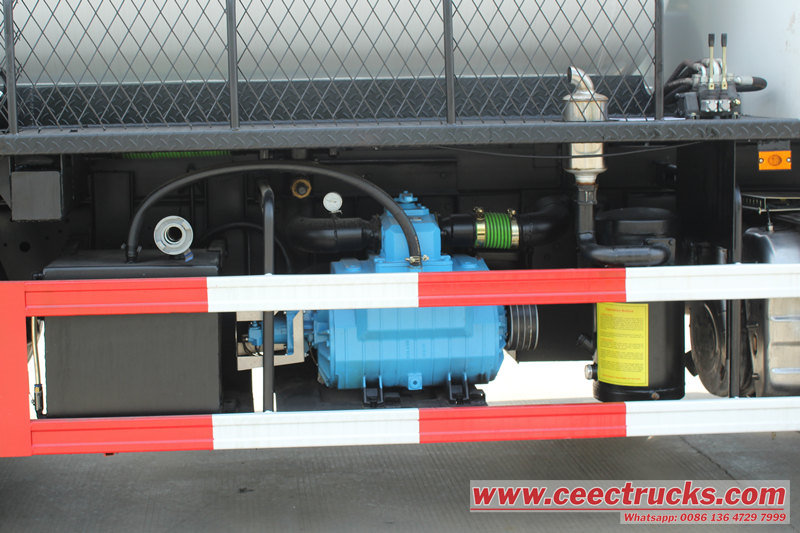 လည်ပတ်နေစဉ်အတွင်း ထရပ်ကားသည် မိလ္လာကန်၊ မြောင်း သို့မဟုတ် ပိုက်များပိတ်ဆို့နေသည့်နေရာတွင် ဆိုက်ကပ်သည်။ ဖုန်စုပ်ပန့်သည် စုပ်ပိုက်ဖြင့် အမှိုက်ပုံးသို့ ချိတ်ဆက်သည်။ အသက်သွင်းပြီးနောက်၊ ၎င်းသည် မစင်၊ မိလ္လာနှင့် sludge ကဲ့သို့သော အရည် သို့မဟုတ် တစ်ပိုင်းအစိုင်အခဲစွန့်ပစ်ပစ္စည်းများကို ကန်ထဲသို့ အတင်းဆွဲသွင်းရန် ဖိအားကွဲပြားမှုကို အသုံးချကာ မြင့်မားသောလေဟာနယ်ကို တိုင်ကီအတွင်းတွင် လျင်မြန်စွာတည်ဆောက်သည်။