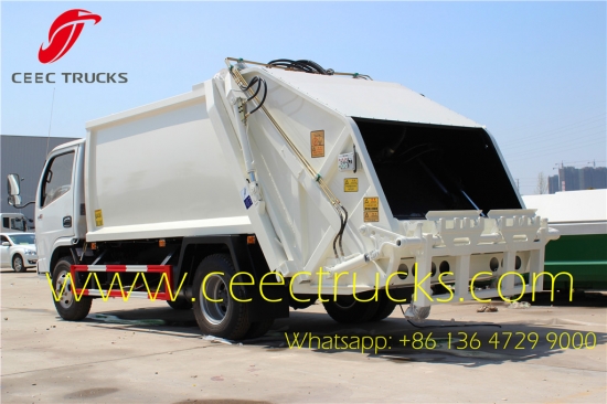 Myanmar 5 CBM အမှိုက်သိမ်းကားများသည် Dongfeng 3300mm wheelbase 4*2 LHD ကိုယ်ထည်၊ CHAOCHAI 95HP အင်ဂျင်နှင့် 5-shift manual gearbox ကို အသုံးပြု၍ operaiton လွယ်ကူစေရန်။ အရည်အသွေးအကောင်းဆုံး ကာဗွန်သံမဏိ Q235 ပစ္စည်း compactor ကိုယ်ထည်