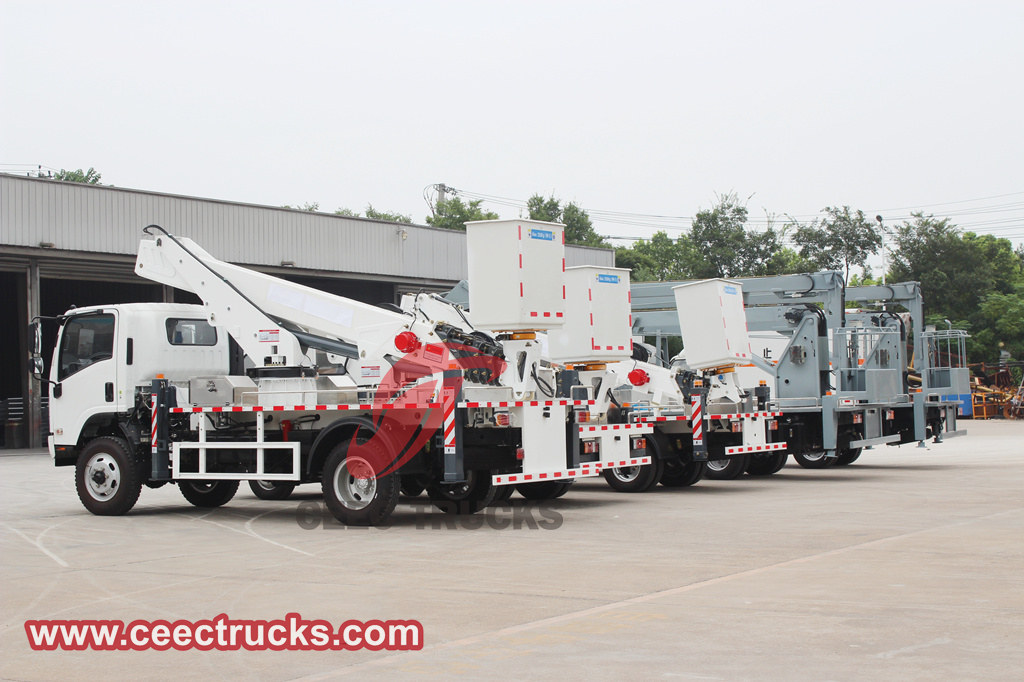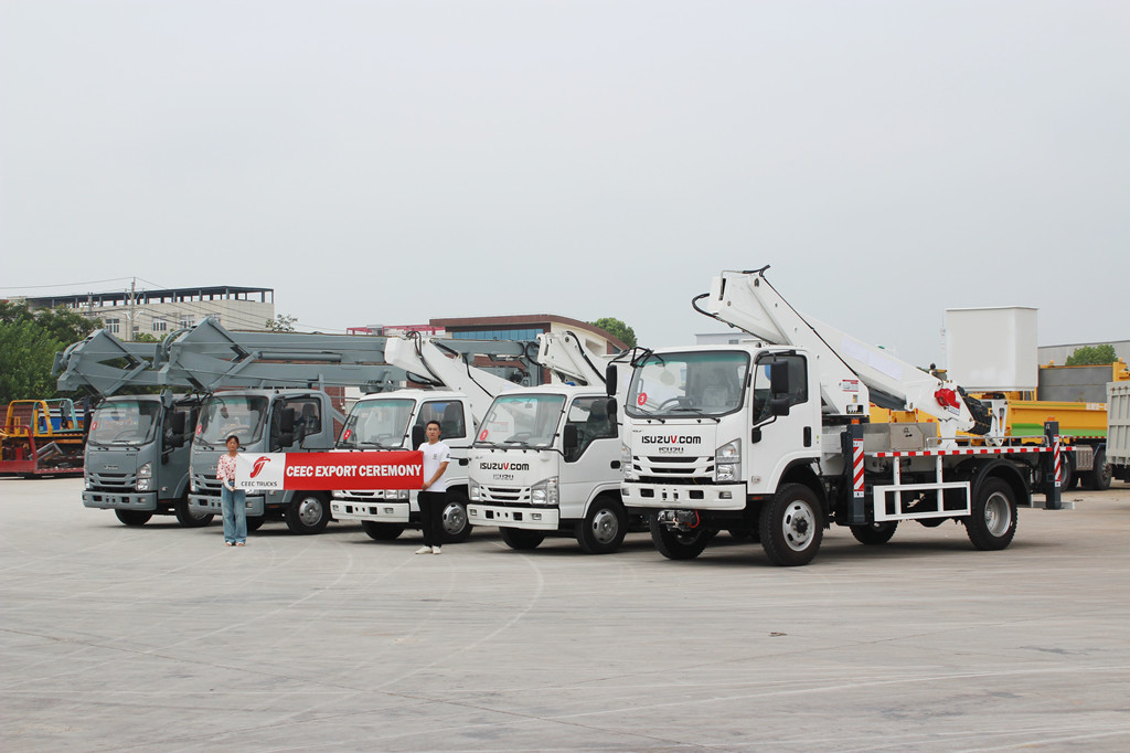 ISUZU ဝေဟင်ပလပ်ဖောင်း ကုန်တင်ကားများ၎င်းတို့၏ တည်ငြိမ်ပြီး ယုံကြည်စိတ်ချရသော စွမ်းဆောင်ရည်၊ လိုက်လျောညီထွေရှိသော လည်ပတ်နိုင်မှုနှင့် ထိရောက်သော လုပ်ဆောင်နိုင်စွမ်းများကြောင့် ကျော်ကြားသည်။ ISUZU 19-meter articulated boom မော်ဒယ်သည် ၎င်း၏ကျစ်လစ်သိပ်သည်းသော ကိုယ်ထည်ဒီဇိုင်းနှင့် အစွမ်းထက်သော extension စွမ်းရည်များဖြင့် ကျဉ်းမြောင်းသောနေရာများတွင် လိုက်လျောညီထွေစွာ လည်ပတ်နိုင်သည်။ ISUZU ၏ အမြင့် နှင့် ပိုမိုကျယ်ပြန့်သော လွှမ်းခြုံမှုရှိသော မီတာ 20 တယ်လီစကုပ် boom ဝေဟင်အလုပ်ပလပ်ဖောင်းသည် အဆောက်အဦကြီးများကို ပြုပြင်ထိန်းသိမ်းရန်နှင့် ဆောက်လုပ်ရန်အတွက် သင့်လျော်သည်။ မော်တော်ယာဉ်စွမ်းဆောင်ရည်ကို အာမခံချိန်တွင် CEEC သည် လုပ်ဆောင်ချက်များကို ပိုမိုရိုးရှင်းစေရန်နှင့် အော်ပရေတာများ၏ လုပ်အားပြင်းအားကို လျှော့ချရန်အတွက် လည်ပတ်မှုအင်တာဖေ့စ်နှင့် ထိန်းချုပ်မှုစနစ်ကို ကောင်းမွန်အောင်ပြုလုပ်ခြင်းဖြင့် သုံးစွဲသူအတွေ့အကြုံကို အာရုံစိုက်ပါသည်။