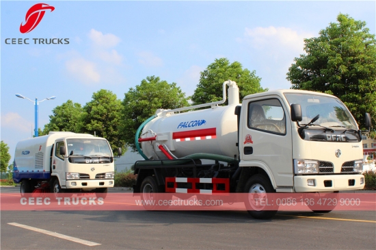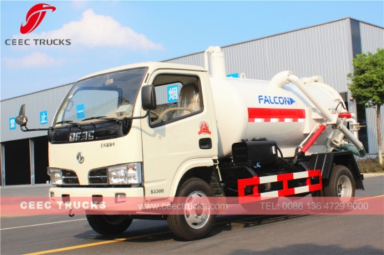 CHAOCHAI 95HP ဒီဇယ်အင်ဂျင်၊ 5-shift manual gearbox, high strength steel material tanker ကိုအသုံးပြုသည့် Dongfeng 4000L မိလ္လာစုပ်ထရပ်ကား၊ Standard အဖြစ် WEILONG ဖုန်စုပ်စက်၊ ပန်းချီနှင့် လိုဂိုများသည် တောင်းဆိုမှုအပေါ် မူတည်ပါသည်။
