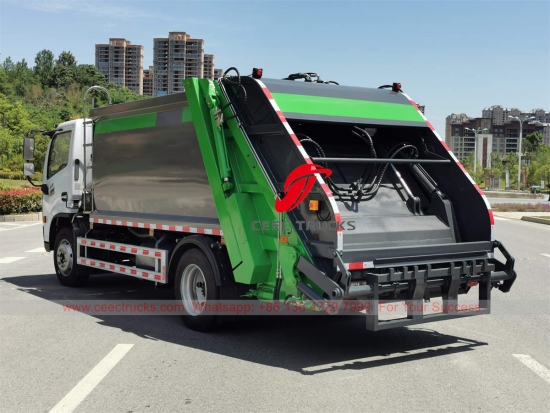Dongfeng Back အမှိုက်တင်ကား (ဟုလည်း ခေါ်သည်။ အမှိုက်ကြိတ်စက်ထရပ်ကား၊ Dongfeng စွန့်ပစ်အမှိုက်ထရပ်ကား၊ နောက်ဘက်ဝန်အမှိုက်ထရပ်ကား၊ Dongfeng 6 ဘီးအနောက် loader၊ Dongfeng အမှိုက်ကြိတ်စက်ထရပ်ကား၊ အမှိုက်ကြိတ်စက်ထရပ်ကား ပေးသွင်းသူ) သည် မြို့ကြီးများ၊ ဘူတာကြီးများ၊ ဆိပ်ကမ်းနှင့် ဆိပ်ခံတံတား၊ လေဆိပ်နှင့် စက်မှုနှင့် ဓာတ်သတ္တုလုပ်ငန်းများနှင့် စစ်ဘက်ဆိုင်ရာ ဌာနများကဲ့သို့ လူနေထူထပ်သော နေရာများတွင် နေ့စဉ် အမှိုက်သယ်ယူမှုအတွက် ဒီဇိုင်းထုတ်ထားသည်။