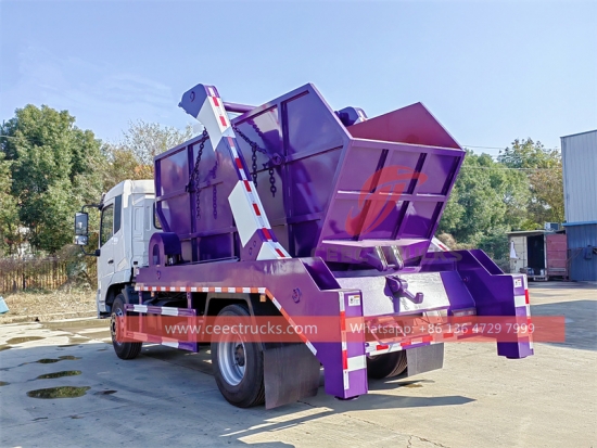 CEEC ထရပ်ကားများ Loader ကိုကျော်ပါ။ပြန်လည်အသုံးပြုရန်အတွက် အမှိုက်ပုံးအများအပြားပါရှိသည့် ထရပ်ကားတစ်စီးကို ဖြုတ်တပ်နိုင်သော ကိုယ်ထည်ကွန်တိန်နာပါရှိသော အမှိုက်ကားတစ်စီးဖြစ်သည်။