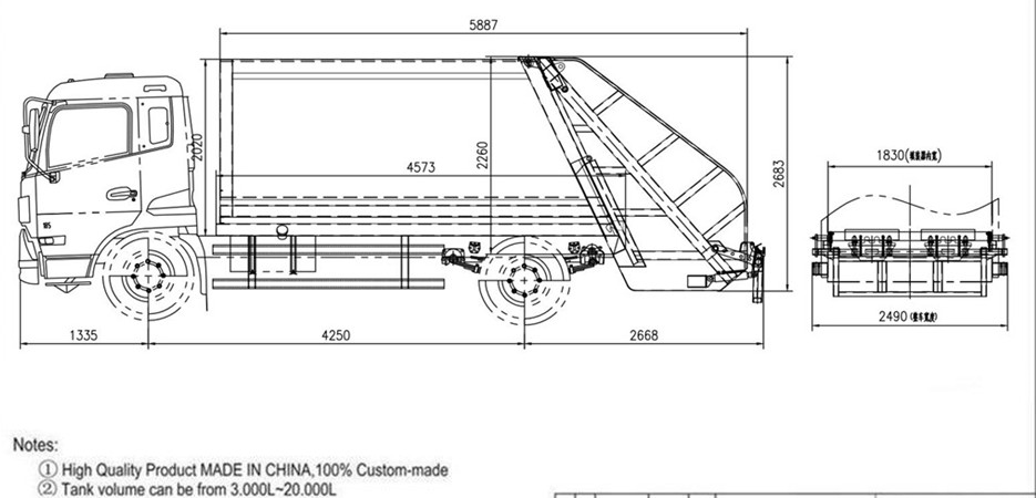 100% စိတ်ကြိုက်အသွင်အပြင်၊ compactor bin စွမ်းရည်၊ လည်ပတ်မှုနည်းလမ်းများနှင့် တည်နေရာကို ဒီဇိုင်းဆွဲခြင်း၊ ထရပ်ကားအရွယ်အစားတစ်ခုလုံးကိုလည်း စိတ်ကြိုက်ပြင်ဆင်နိုင်ပါသည်။ .