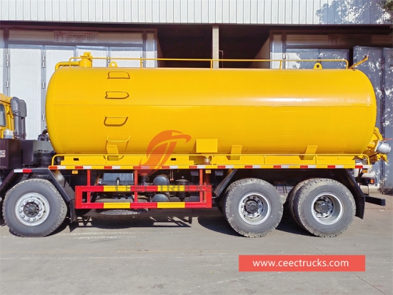 3.Equipments: ကာဗွန်သံမဏိပစ္စည်းများ၊ အီတလီနိုင်ငံမှတင်သွင်းသော vane vacuum pump၊ ပတ်ပတ်လည် tank ကို lifting system ဖြင့် hydraulic device ဖြင့်ဖွင့်နိုင်ပြီး၊ self-flowing hole နှင့် special valve များပါရှိသော၊ စုတ်ယူမှုအနက်သည် 5-8 မီတာအထိရောက်ရှိနိုင်ပြီး အထူးမိလ္လာစုပ်ပိုက်များတပ်ဆင်ထားပါသည်။