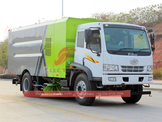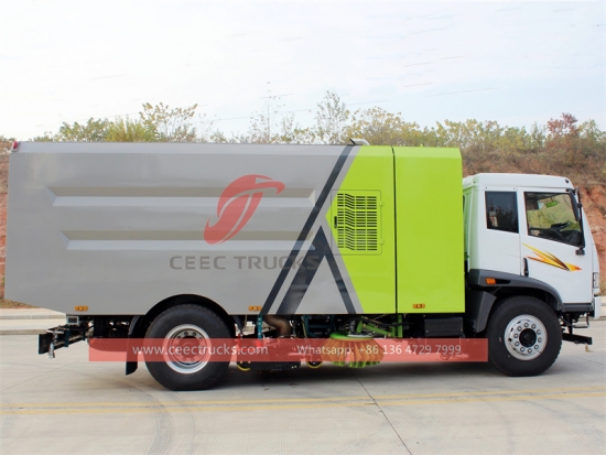 FAW RHD 4x2 Vacuum Sweeping turck (ဟုလည်း ခေါ်သည်။FAW လမ်းသန့်ရှင်းရေးထရပ်ကား၊ အသစ်စက်စက် FAW ဖုန်စုပ်ထရပ်ကား၊ Truck Mounted Sweeper၊ FAW အရည်အသွေးမြင့် တံမြက်လှည်းထရပ်ကား၊ အဝေးပြေး တံမြက်လှည်းထရပ်ကား FAW၊ ဖုန်စုပ်စက် ထုတ်လုပ်သူ) သည် လမ်းသန့်ရှင်းရေး၊ အမှိုက်များကို ပြန်လည်အသုံးပြုခြင်းနှင့် သယ်ယူပို့ဆောင်ရေးတို့ကို ပေါင်းစပ်ထားသည့် ထိရောက်သော သန့်ရှင်းရေးကိရိယာ အမျိုးအစားသစ်ဖြစ်သည်။ ၎င်းသည် ခေတ်မီမြို့ပြသန့်ရှင်းရေးလုပ်ငန်းများတွင် အစွမ်းထက်သောလက်ထောက်ဖြစ်သည်။ အမှိုက်ပုံးကိုယ်ထည်သည် သံမဏိအလွှာတစ်ခုလုံးရှိ သံမဏိအလွှာတစ်ခုတည်ဆောက်ပုံကို လက်ခံထားပြီး၊ စုစုပေါင်းထုထည် 16CBM ရှိသည်။ သန့်ရှင်းရေးလုပ်ဆောင်မှုတွင် ဗဟိုပါ၀င်သော လှိမ့်စုပ်စုပ်စက်နှင့် ဘယ်နှင့်ညာ ပွတ်ဆွဲသည့်ပြားနှစ်ခုကို အသုံးပြုသည်။ သန့်ရှင်းရေးဆောင်ရွက်စဉ်အတွင်း အမှိုက်များကို စုပ်ယူရန် နော်ဇယ်ကို လွယ်ကူချောမွေ့စေရန်အတွက် လမ်းအလယ်သို့ အမှိုက်များကို ရှင်းပစ်ပါသည်။ ပန်းကန်ပြားနော်ဇယ်တိုင်းသည် ဖုန်မှုန့်များကို ဖြန်းနိုင်သည်။ သန့်ရှင်းရေးလုပ်နေစဉ်အတွင်း ဖုန်မှုန့်၏ပါဝင်မှုသည် 2.5mg/CBM အောက်တွင်ထားရှိကာ သန့်ရှင်းမှုနှုန်း 99% အထိရှိသည်။