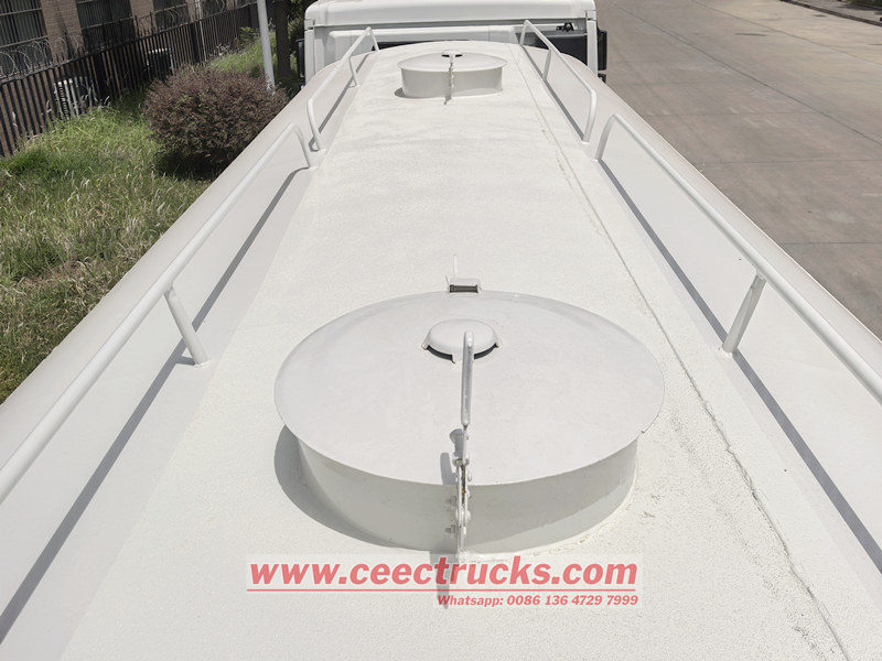 ကိုယ်ထည်အပေါ်ပိုင်းသည် 20cbm စွမ်းရည်ရှိသော ဘဲဥပုံကာဗွန်စတီးလ်ရေလှောင်ကန်တစ်ခုဖြစ်ပြီး WEILONG 80QZF-60/90S ပန့်၊ ပိုက်လိုင်းသိုလှောင်မှုသေတ္တာများ တပ်ဆင်ထားသည်။ ထို့အပြင်၊ ယာဉ်တွင် စိတ်ကြိုက်ရေဖြန်းမုဒ်သုံးမျိုးပါရှိသည်- ရှေ့ရေနံဇယ်၊ နောက်ရေနံဇယ်နှင့် မီးသတ်ပိုက်ဖြန်းစောင့်ကြည့်ခြင်းတို့ကို အသုံးပြုနိုင်မည်ဖြစ်သည်။