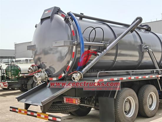 Self-priming နှင့် self-draining-HOWO ဖုန်စုပ်ထရပ်ကားတွင် အညစ်အကြေးများကို အလွယ်တကူစုပ်ထုတ်နိုင်ပြီး လုပ်ငန်းစွမ်းဆောင်ရည်ကို မြှင့်တင်ပေးသည့် သတ္တုကိုယ်ထည်နှင့် စုပ်ထုတ်သည့်လုပ်ဆောင်ချက်များပါရှိသည်။