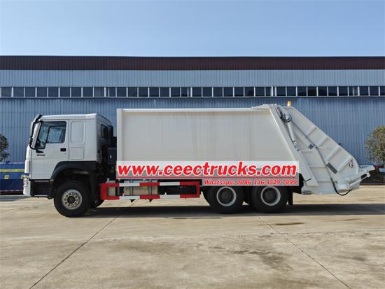 HOWO 6x4 20cbm နောက်ဘက် loader compactor ထရပ်ကား |