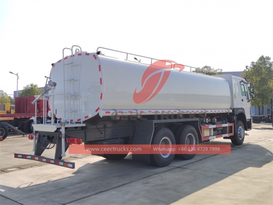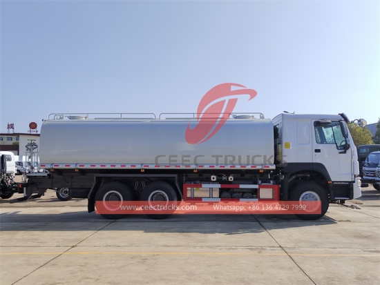 Howo 20 cbm water Bowser ထရပ်ကား(ဟုလည်း ခေါ်သည်။HOWO ရေမှုတ်ယာဉ်၊ HOWOရေဖြန်းထရပ်ကား၊ HOWO၁၀ ဘီး ရေတင်သင်္ဘော၊ HOWOWater transpotation ယာဉ်များ Water bowser) သည်လမ်းရှင်းလင်းခြင်း၊ သစ်ပင်နှင့်မြက်ခင်းစိမ်းလန်းရေး၊ မြင့်မားသောအဆောက်အအုံသန့်ရှင်းရေး၊ လမ်းနှင့် စက်ရုံများတည်ဆောက်ခြင်းအတွက် အသုံးပြုသည်။ ၎င်းတွင် ရေဆွဲခြင်း၊ ရေလောင်းခြင်း၊ ရေသယ်ယူခြင်းနှင့် မီးငြှိမ်းသတ်ခြင်း စသည့် လုပ်ဆောင်ချက်များပါရှိသည်။