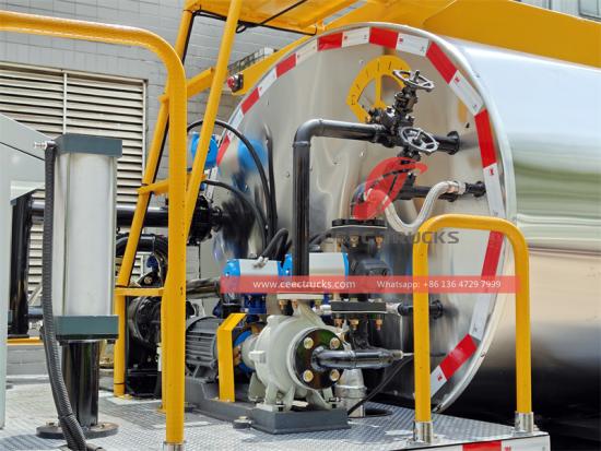 နှစ်လွှာလျှပ်ကာတိုင်ကီနည်းပညာ3000L ကတ္တရာတိုင်ကီသည် 80mm ထူထပ်သော ကျောက်ဂွမ်းစလျှပ်ကာအလွှာ + စတီးလ်စတီးလ် အပြင်ဘက်ပန်းကန်ပြားကို လက်ခံရရှိပြီး 8 နာရီအတွင်း အပူချိန်ကျဆင်းမှုသည် ≤12℃ ဖြစ်ပြီး၊ ၎င်းသည် ကတ္တရာ၏ ထပ်ခါတလဲလဲအပူပေးသည့် အရေအတွက်ကို များစွာလျှော့ချပေးပြီး လောင်စာဆီသုံးစွဲမှုကို လျှော့ချပေးသည်။ တပ်ဆင်ထားသော လှိုင်းဖြတ်ပန်းကန်ပြားဒီဇိုင်းသည် သယ်ယူပို့ဆောင်နေစဉ်အတွင်း ကတ္တရာလှုပ်ခြင်းနှင့် ရေပက်ခြင်းမှ ကာကွယ်ပေးပြီး ဘေးကင်းမှုကို ပိုမိုကောင်းမွန်စေသည်။