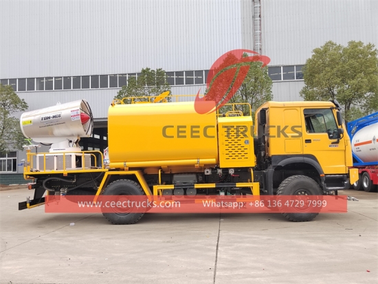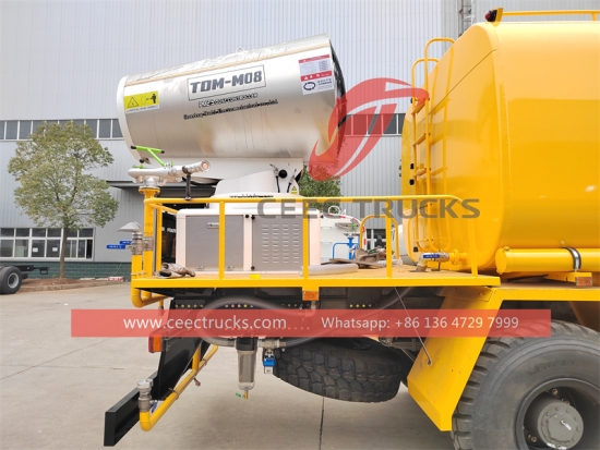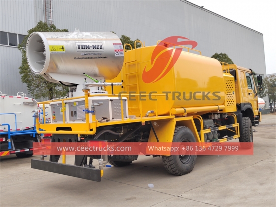 Howo 8CBM ဖုန်မှုန့်နှိမ်နင်းရေးထရပ်ကား (ဟုလည်း ခေါ်သည်။HOWO 4X4သန့်ရှင်းသောလေထုဖုန်မှုန့်ထရပ်ကားဟော့ရောင်း၊HOWO 4X4ဖုန်မှုန့်ထိန်းချုပ်ရေထရပ်ကား၊ HOWO 4X4 ရေဖြန်းထရပ်၊ HOWO 4X4 ရေပေးဝေရေးထရပ်ကား၊ HOWO 4X4ခရီးဆောင်ရေတင်သင်္ဘော) သည် ဆောက်လုပ်ရေး၊ သတ္တုတွင်း သို့မဟုတ် အခြားစက်မှုလုပ်ငန်းများမှ ထုတ်ပေးသော လေဖုန်မှုန့်ပမာဏကို လျှော့ချရန်အတွက် အသုံးပြုသော ရေလှောင်ကန်များနှင့် မှုတ် Nozzle များ တပ်ဆင်ထားသော အထူးပြုယာဉ်ဖြစ်သည်။ဖုန်မှုန့်အမှုန်အမွှားများကို လေထဲသို့မ၀င်ရောက်အောင်ကာကွယ်ပေးပြီး အသက်ရှုလမ်းကြောင်းဆိုင်ရာပြဿနာများနှင့် အခြားကျန်းမာရေးအန္တရာယ်များကို လျှော့ချပေးသည်။