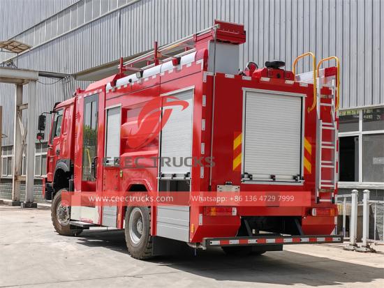 Howo 4x4 မီးသတ်ထရပ်သည် ကွဲပြားသောကယ်ဆယ်ရေးလိုအပ်ချက်များကိုဖြည့်ဆည်းရန် 400HP အင်ဂျင်ပါဝါ တပ်ဆင်ထားပြီး ပမာဏကြီးမားသောရေတိုင်ကီများနှင့် နောက်ထပ်မီးငြှိမ်းသတ်ကိရိယာများ (ဖြိုခွင်းရေးကိရိယာများ၊ အမြှုပ်များကဲ့သို့သော) အင်ဂျင်ကို တပ်ဆင်ထားပါသည်။ ဥပမာအားဖြင့်၊ ဆီမီးများကို ရေနှင့်အမြှုပ်များဖြင့် တစ်ချိန်တည်းငြှိမ်းသတ်ရန် လိုအပ်ပြီး မီးသတ်ကား၏ ခံနိုင်ရည်အားသည် မီးငြှိမ်းသတ်မှု၏ ထိရောက်မှုကို တိုက်ရိုက်ထိခိုက်စေနိုင်သည်။ ခေတ်မီမီးငြှိမ်းသတ်မှုနည်းပညာလိုအပ်ချက်များကိုဖြည့်ဆည်းရန် ပေါင်းစပ်ထားသော "ထောက်လှမ်း-မီးသတ်-ကယ်ဆယ်ရေး" ပလပ်ဖောင်းတစ်ခုအဖြစ် မော်ဂျူလာဒီဇိုင်းနှင့် လက်ဝယ်ရှိသောကြားခံများသည် ဒရုန်းများနှင့် အပူဓါတ်ပုံကိရိယာများကဲ့သို့သော အသိဉာဏ်ရှိသောကိရိယာများ တပ်ဆင်ခြင်းကို လွယ်ကူချောမွေ့စေသည်။