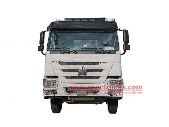 Howo 4x2 အအေးခန်းထရပ်ကားသည် 4600 မီလီမီတာ wheelbase ပါရှိသည့် Howo HW76 ရှေ့ဘက်ခန်းကိုယ်ထည်အသစ်ကို အသုံးပြုထားသည်။ ၎င်းတွင် Weichai WP10.340E22 340hp အင်ဂျင်နှင့် Sinotruk HW19710 10-speed ဂီယာတပ်ဆင်ထားပါသည်။ အအေးခန်းကိုယ်ထည်သည် 6500 ရှိသည်။ × ၂၃၅၀ × 2500mm၊ FRP + PU foam + 105mm FRP panel material ဖြင့် တည်ဆောက်ထားသော ဖိုက်ဘာမှန်ဖြင့် တည်ဆောက်ထားပြီး အပြည့်အ၀ အလုံပိတ်အသားညှပ်ပေါင်မုန့်၊ ညာဘက်ခြမ်းအဖွင့်တံခါး၊ အရွယ်အစားပြည့် နောက်တံခါးနှစ်ထပ်နှင့် စလစ်မကပ်ဘဲ ခံနိုင်ရည်ရှိသော ကြမ်းပြင်များ ပါဝင်ပါသည်။ ၎င်းသည် အမှီအခိုကင်းသော အအေးခန်းယူနစ် CARRIER CITIMAX 1100 ကို အသုံးပြုသည်။