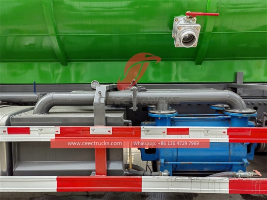CEEC ထရပ်ကားများHowo ညာလက်မောင်း လေဟာနယ်တင်ကားကို WEILONG သို့မဟုတ် အီတလီ MORO / BP ဖုန်စုပ်ပန့် တပ်ဆင်ထားပြီး၊ 10CBM သို့မဟုတ် ထို့ထက်ပို၍ ထိထိရောက်ရောက် အလုပ်လုပ်ရန်အတွက် Double Pump ကို အကြံပြုထားသည်။