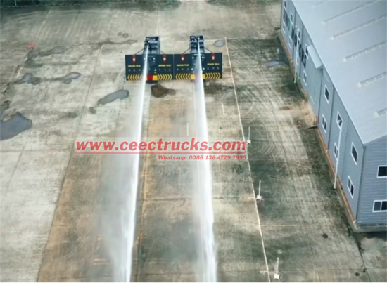 ● ယာဉ်အပြည့် ဖိအားမြင့်လေဖြန်းခြင်း- ခေါင်မိုးပေါ်တွင် ဖိအားမြင့်ရေမြှုပ် နော်ဇယ် ၆ ဖွဲ့ကို ခေါင်မိုးပေါ်တွင် စီစဉ်ပြီး ကိုယ်ထည်ပေါ်တွင် ဖိအား 1.2MPa နှင့် အလုပ်လုပ်သော ဖိအား 1.2MPa နှင့် 15L/min တစ်ခုတည်း နော်ဇယ်စီးနှုန်း 15L/min ဖြင့် မီးငြှိမ်းသတ်နေသော မျက်မမြင်ဧရိယာကို ဖုံးအုပ်ထားသည်။့စက္ကန့် 30 အတွင်း ယာဉ်တစ်ခုလုံး။