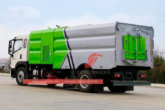 HOWO 12cbm လမ်းဘေးသန့်စင်ရေးထရပ်ကား၊ HOWO 4x2 ကိုယ်ထည်၊ 6-shift manual ဂီယာအုံ၊ 266HP ဒီဇယ်အင်ဂျင်၊ သံမဏိဖုန်မှုန့်နှင့် ရေသန့်ကိုယ်ထည်၊ အဝတ်လျှော်စနစ်ပါသော ဘရက်ရှ် ၂ ခု၊ ကားအတွင်းခန်း လျှပ်စစ်ထိန်းချုပ်မှုပါရှိသည်။ ပန်းချီနှင့် လိုဂိုအားလုံးသည် လိုအပ်ချက်အပေါ် မူတည်ပါသည်။