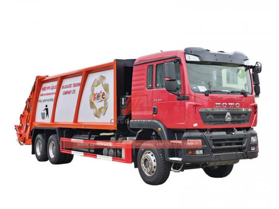 HOWO HW76, NX cabin is optionalဒီ Howo ၆ x၄ လေးလံ တာဝန် comp သရုပ်ဆောင် အမှိုက်ထရပ်ကားသည် သန့်ရှင်းရေးအင်ဂျင်နီယာနယ်ပယ်တွင် ထူးချွန်သောအလုပ်ဖြစ်ပြီး မြို့ပြသန့်ရှင်းရေးအတွက် ဗျူဟာမြောက်လက်နက်တစ်ခုဖြစ်သည်။ . Wd615.47 အင်ဂျင်ကို တပ်ဆင်ထားပြီး အားကောင်းသော အထွက်နှုန်းလည်း ရှိသည်။ ၃၇၁ HP 9.726L ၏ ရွှေ့ပြောင်းမှုနှင့် တာဘိုအားသွင်းခြင်းနှင့် အပြန်အလှန်အအေးပေးသည့်နည်းပညာ။ ၎င်း၏ ၃၃ တန် ၎ စုစုပေါင်းအလေးချိန်ဖွဲ့စည်းပုံနှင့် ၂၀ တန် ၎ ဝန်ထုပ်ဝန်ပိုးသည် ကြီးမားသောနှင့် အလတ်စားမြို့ကြီးများ၏ နေ့စဉ် အမှိုက်ဖယ်ရှားရေး လိုအပ်ချက်များကို အပြည့်အဝ ဖြည့်ဆည်းပေးနိုင်သည်။