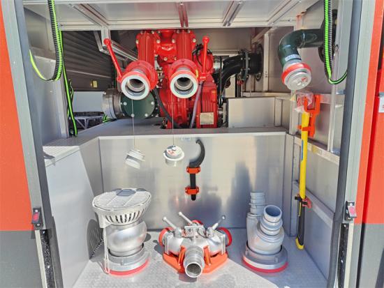 စွမ်းဆောင်ရည်မြင့် မီးသတ်ပန့်- 10 bars တွင် 4,800 L/min output ပါရှိသော CB10/80 fire pump ပါရှိပြီး ခိုင်ခံ့ပြီး ယုံကြည်စိတ်ချရသော ရေ/အမြှုပ်များထွက်ခြင်းကို သေချာစေသည်။ Darley နှင့် HALE အမှတ်တံဆိပ် မီးသတ်ပန့်အဖြစ် ရွေးချယ်နိုင်သည်။