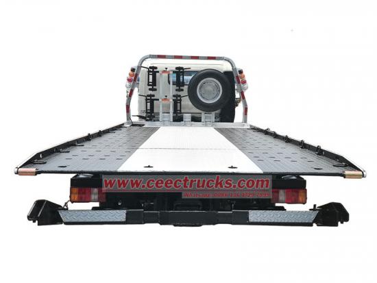 Howo light duty flat bed towing wrecker သည် Howo RHD light chassis၊ 3360mm wheelbase၊ A/C, USB, direction help. Cummins ISF3.8S3141 141HPdiesel အင်ဂျင်၊ 4 ဆလင်ဒါ inline ပေါ်တွင် ပြုပြင်ထားသော ပရော်ဖက်ရှင်နယ် ပျက်ဆီးနေသော ကယ်ဆယ်ရေးယာဉ်ဖြစ်သည်။ ထရပ်ကားတွင် 4 တန် တင်ဆောင်နိုင်သော ပလပ်ဖောင်းတစ်ခုရှိပြီး 21m winch၊ wheel bracket ပါရှိသည်။