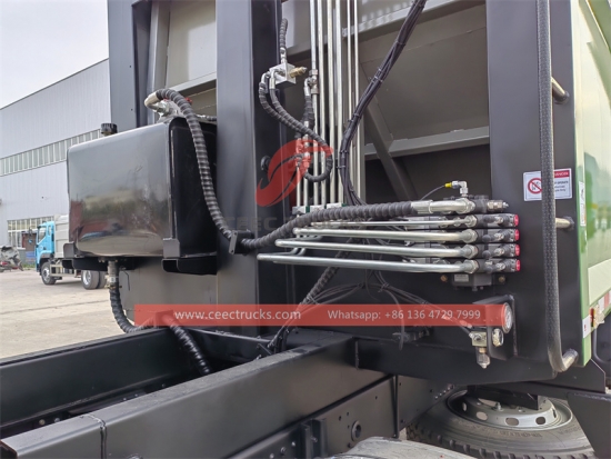 hermetic အမှိုက်ကန်၊ ဟိုက်ဒရောလစ်စနစ်၊ လည်ပတ်မှုစနစ်တို့ဖြင့် ဖွဲ့စည်းထားသည်။ ထရပ်ကားတစ်ခုလုံးသည် သန့်စင်ပြီး အမှိုက်များကို အလိုအလျောက် ချုံ့နိုင်ပြီး အမှိုက်များကို ဖိသိပ်ခြင်း လုပ်ငန်းစဉ်တွင် ထုတ်ပေးသော မိလ္လာအားလုံးသည် မိလ္လာကန်ထဲသို့ ရောက်သွားပါသည်။ |