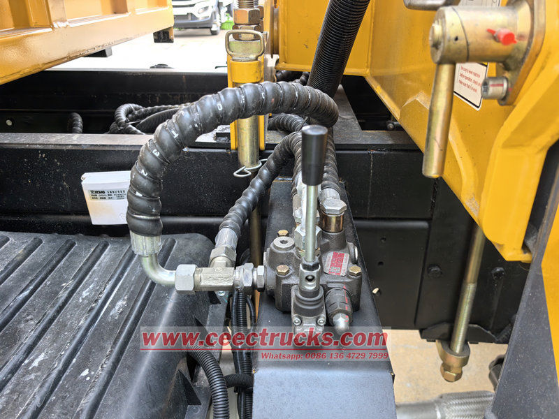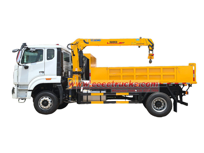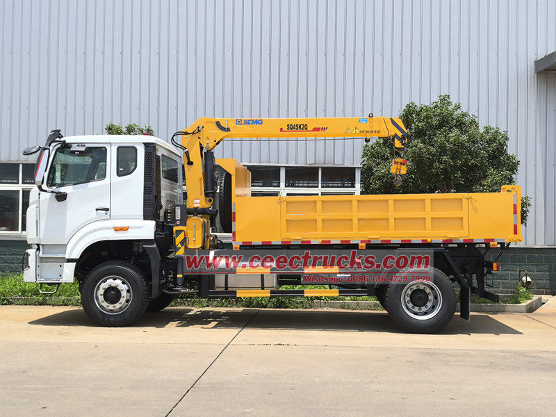 HOWO single axle 4ton ထရပ်ကား တပ်ဆင်ထားသော ကရိန်းသည် ဆောက်လုပ်ရေး၊ ထောက်ပံ့ပို့ဆောင်ရေး၊ အခြေခံအဆောက်အဦ၊ သတ္တုတူးဖော်ရေးနှင့် အခြားနယ်ပယ်များတွင် အသုံးပြုရန်အတွက် သင့်လျော်သည်။ ကားကို HOWO ကိုယ်ထည်ပေါ်တွင် ပြုပြင်ထားပြီး ဘီးအခြေ 4600 မီလီမီတာရှိသည်။ ၎င်းတွင် WEICHAI WP10.300E22 300HP အင်ဂျင်နှင့် HW13710 10-speed ဂီယာဘောက်စ် တပ်ဆင်ထားသည်။ အပေါ်ပိုင်းသည် 3800 × 2400 × 450 မီလီမီတာ ကုန်သေတ္တာတစ်လုံးနှင့် 4 တန်တင်နိုင်သော XCMG SQ4SK2Q ကရိန်းတစ်ခုဖြစ်သည်။ ကရိန်းကို နှစ်ဖက်စလုံးရှိ manual hydraulic levers များဖြင့် လည်ပတ်နိုင်ပြီး outriggers များ၏ ဆုတ်ခွာမှုနှင့် တိုးချဲ့မှုများနှင့် ကရိန်း၏ ဆုတ်ခွာမှုနှင့် လည်ပတ်မှုကို ထိန်းချုပ်နိုင်သည်။