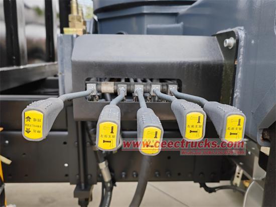 ယာဉ်အား ဝန်တည်ငြိမ်မှုနှင့် ဖြတ်သန်းနိုင်မှုတို့ကို ထည့်သွင်းစဉ်းစားကာ wheelbase 4500mm ရှိသော HOWO 4x2 Class II ကိုယ်ထည်ကို အခြေခံ၍ ပြုပြင်ထားသည်။ တိုတောင်းသော wheelbase ဒီဇိုင်းသည် ကျဉ်းမြောင်းသော မြို့ပြလမ်းများ သို့မဟုတ် ရှုပ်ထွေးသော ဆောက်လုပ်ရေးလုပ်ငန်းခွင်များအတွက် သင့်လျော်သော ယာဉ်၏အကွေ့အချင်းကို သေးငယ်စေသည်။ ရှေ့ axle ဝန် 6.5 တန် နှင့် နောက် axle ဝန် 11.5 တန် ရှိသော ခိုင်ခံ့မှု မြင့်မားသော သံမဏိဘောင်ကို ခံယူပြီး အလေးချိန် ခံနိုင်ရည်နှင့် တာရှည်ခံမှု ကို အာမခံပါသည်။