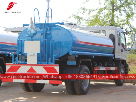 ISUZU 10,000L water Bowser ထရပ်ကား၊ ISUZU FTR ဘယ်ဘက်လက်မောင်း ကိုယ်ထည်၊ MLD 6-shift manual ဂီယာအုံ၊ ISUZU 205HP ဒီဇယ်အင်ဂျင်၊ နာမည်ကြီး အမှတ်တံဆိပ် ရေစုပ်စက်၊ ရှေ့၊ အလယ်နှင့် အနောက် မှုတ် Nozzle ပါသော စိတ်ကြိုက်ရွေးချယ်နိုင်သည်။ ပန်းချီနှင့် လိုဂိုအားလုံးသည် လိုအပ်ချက်အပေါ် မူတည်ပါသည်။