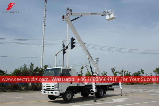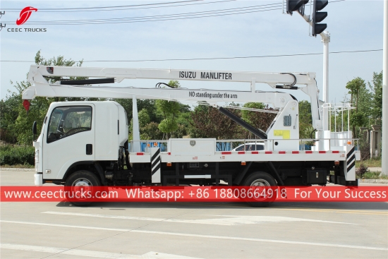 ISUZU 18m Aerial Platform Working Vehicle (ကိုလည်းခေါ်တယ်။ Aerial Platform Truck ISUZU, ISUZU Hydraulic Manlifter, ISUZU Manlifter, hot sale arm lifting bucket truck, ISUZUအမြင့်လုပ်ငန်းသုံးယာဉ်၊ ဈေးနှုန်းချိုသာသော ထရပ်ကားများ boom lifter များ တပ်ဆင်ထားသည်။)မီးပွိုင့်များ၊ လမ်းမီးများ၊ ရှုခင်းသစ်ပင်များ၊ သန့်ရှင်းရေး/သတ်မှတ်ခြင်း ဆိုင်းဘုတ်များနှင့် အခြားသော အမြင့်လေကြောင်းဆိုင်ရာလုပ်ငန်းများအတွက် စံပြဖြစ်သည်.