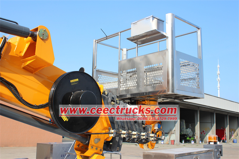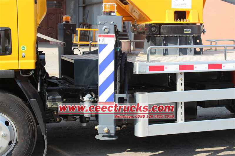 ဒီIsuzu ထရပ်ကား ကိုယ်ထည်-တပ်ဆင်ထားသော 20m articulated ဝေဟင်လုပ်ငန်းပလက်ဖောင်းတိုးချဲ့နိုင်သော အပေါက် ၄ ပေါက်ပါရှိပြီး မြေပြင်တွင် ပိုမိုကောင်းမွန်စွာ ဆုပ်ကိုင်နိုင်စေရန်နှင့် လမ်းပေါ်တွင် ပိတ်ဆို့မှုများကို ထိန်းညှိပေးနိုင်သည်။ gyro နှင့် triflash၊ drop-side၊ chests သို့မဟုတ် high-level protection အပါအဝင် အချက်ပြကိရိယာများကဲ့သို့သော ရွေးချယ်မှုများကို သင်ထည့်သွင်းနိုင်သည်။