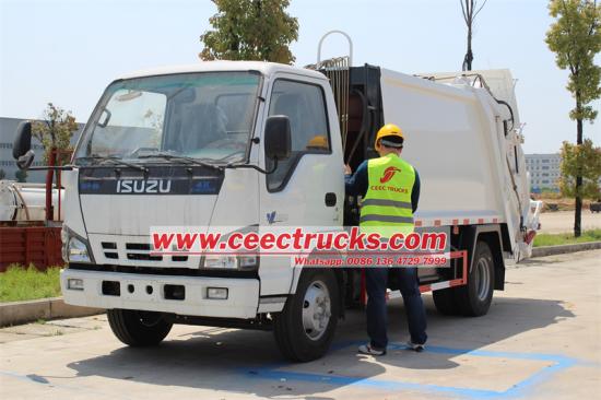 â — တရုတ်အကောင်းဆုံး ISUZU NKR 600P နောက်ဖေး loader အမှိုက်ကြိတ်စက် ထရပ်ကားစက်ရုံ