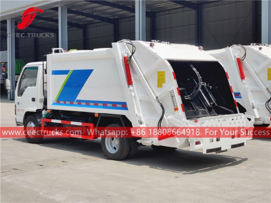 ISUZU Waste Compression Truck (ဟုလည်း ခေါ်သည်။ အမှိုက်ကြိတ်စက်၊ ISUZU 6 wheeler rear load garbage truck၊ ISUZU compression rubbish truck ထုတ်လုပ်သူ၊ အသစ်စက်စက် ISUZU refuse compactor၊ တရုတ်နိုင်ငံမှ ISUZU အမှိုက်ကွန်ပရက်ဆာ ထရပ်ကား၊ နောက် loader အမှိုက်ကားရောင်းချသူ) သည် မြို့ကြီးများ၊ ဘူတာကြီးများ၊ ဆိပ်ကမ်းနှင့် ဆိပ်ခံတံတား၊ လေဆိပ်နှင့် စက်မှုနှင့် ဓာတ်သတ္တုလုပ်ငန်းများနှင့် စစ်ဘက်ဆိုင်ရာ ဌာနများကဲ့သို့ လူနေထူထပ်သော နေရာများတွင် နေ့စဉ် အမှိုက်သယ်ယူမှုအတွက် ဒီဇိုင်းထုတ်ထားသည်။