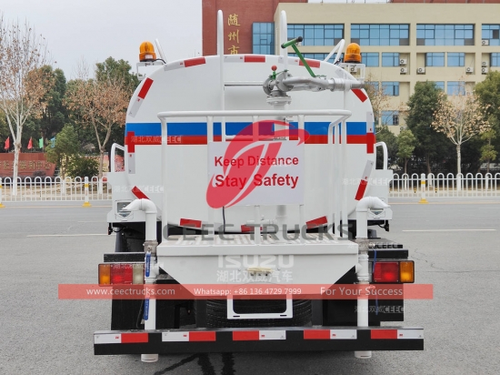 ISUZU Water Spary Truck ၊ (ဟုလည်း ခေါ်သည်။ ရေစည်ထရပ် ISUZU၊ ISUZU ရေဖြန်းထရပ်ကား၊ ISUZU ရေဖြန်းစက်၊ ISUZU ရေဖြန်းထရပ်ကား၊ စိတ်ကြိုက် ISUZU ရေပေးဝေရေးကား) သည်လမ်းရှင်းလင်းခြင်း၊ သစ်ပင်နှင့်မြက်ခင်းစိမ်းလန်းရေး၊ မြင့်မားသောအဆောက်အအုံသန့်ရှင်းရေး၊ လမ်းနှင့် စက်ရုံများတည်ဆောက်ခြင်းအတွက် အသုံးပြုသည်။ ၎င်းတွင် ရေဆွဲခြင်း၊ ရေလောင်းခြင်း၊ ရေသယ်ယူခြင်းနှင့် မီးငြှိမ်းသတ်ခြင်း စသည့် လုပ်ဆောင်ချက်များပါရှိသည်။