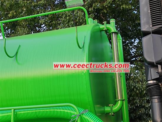 တိကျသောလည်ပတ်မှုလုပ်ငန်းစဉ်တွင်၊ စုတ်ယူသည့်ထရပ်ကားသည် များသောအားဖြင့် self-priming နှင့် self-draining ၏လုပ်ဆောင်ချက်ရှိသည်။ တိုင်ကီအတွင်းရှိ မိလ္လာများကို စွန့်ထုတ်ရန် လိုအပ်သောအခါ၊ သီးသန့်ကိရိယာတစ်ခုမှတစ်ဆင့် မိလ္လာကန်ထဲသို့ လေကို အဆက်မပြတ် စွန့်ပစ်သည်။ ၎င်းသည် ထွက်လမ်းမရှိသောကြောင့်၊ ၎င်းသည် ဖိသိပ်ထားသောကြောင့် တိုင်ကီအတွင်းရှိ ဖိအားသည် လေထုဖိအားထက် ပိုမိုမြင့်မားစေသည်။ မိလ္လာကို ဖိထားသောလေ၏ လုပ်ဆောင်ချက်အောက်ရှိ siphon နှင့် suction pipe မှတဆင့် tank မှ ထုတ်လွှတ်သည်။ ဤဒီဇိုင်းသည် စုပ်ထရပ်ကားအား မစင်၊ ရွှံ့၊ ဆီကြမ်းစသည်ဖြင့် အမျိုးမျိုးသော အရည်ပစ္စည်းများကို ထိရောက်စွာ စုဆောင်းသယ်ယူနိုင်စေပြီး၊ စုပ်ယူမှုနှင့် စွန့်ပစ်အမှိုက်များကို သယ်ဆောင်ရန်အတွက် အထူးသင့်လျော်ပါသည်။