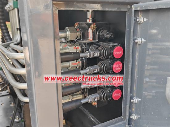 နောက်ဖုံးလျှပ်စစ်ထိန်းချုပ်မှုသေတ္တာယာဉ်နောက်ခန်းတွင်ရှိသော လျှပ်စစ်ထိန်းချုပ်သေတ္တာသည် မြေပြင်ဝန်ထမ်းများအတွက် အခြားထိန်းချုပ်မှုနည်းလမ်းကို ပေးဆောင်သည်။ ၎င်းသည် scraper slide ကိုလည်ပတ်နိုင်ပြီး၊ စက်ဝိုင်းချုံ့ခြင်းလုပ်ငန်းကိုထိန်းချုပ်နိုင်သည်၊ သို့မဟုတ်အရေးပေါ်ရပ်တန့်ခြင်းစသည်တို့ကိုလုပ်ဆောင်နိုင်သည်။